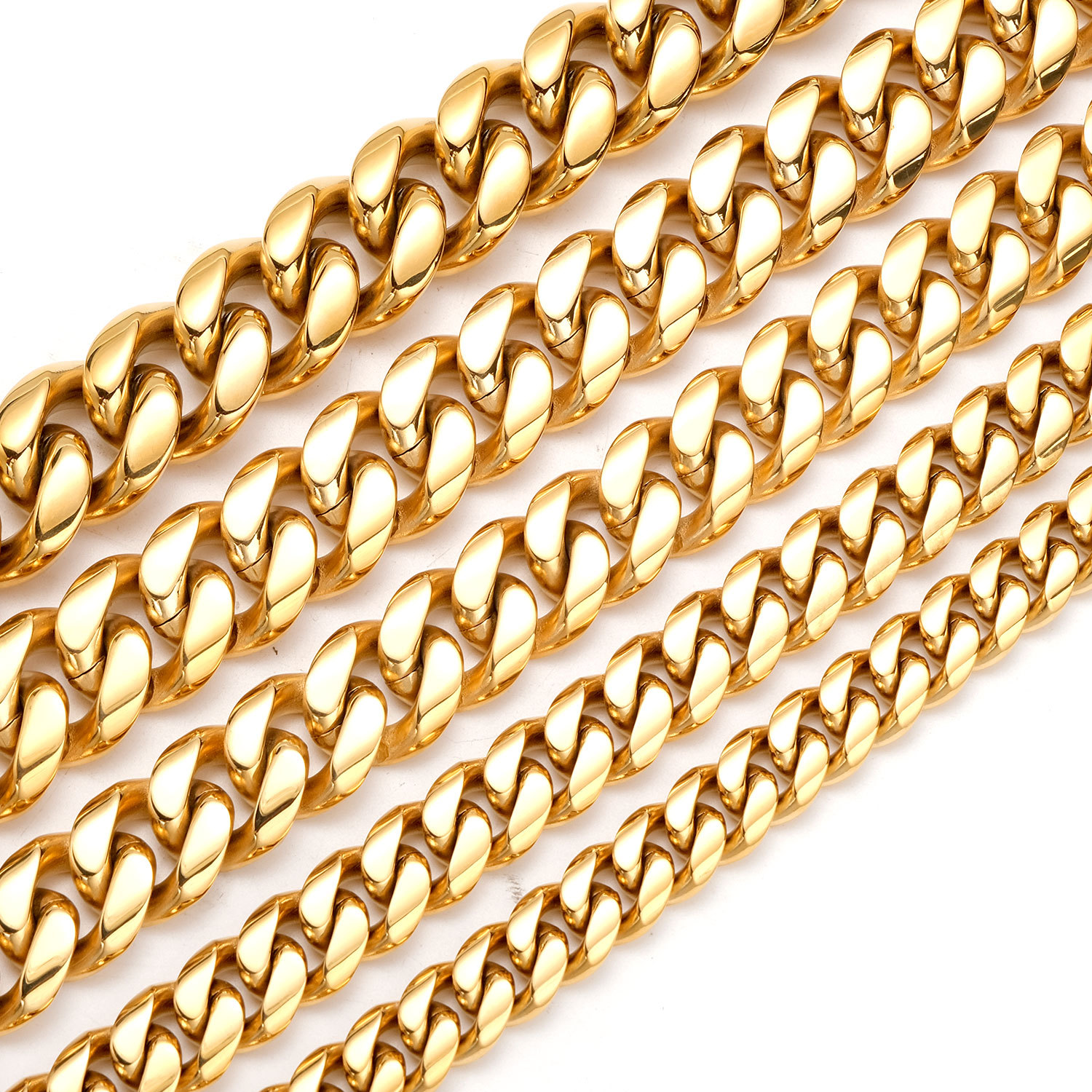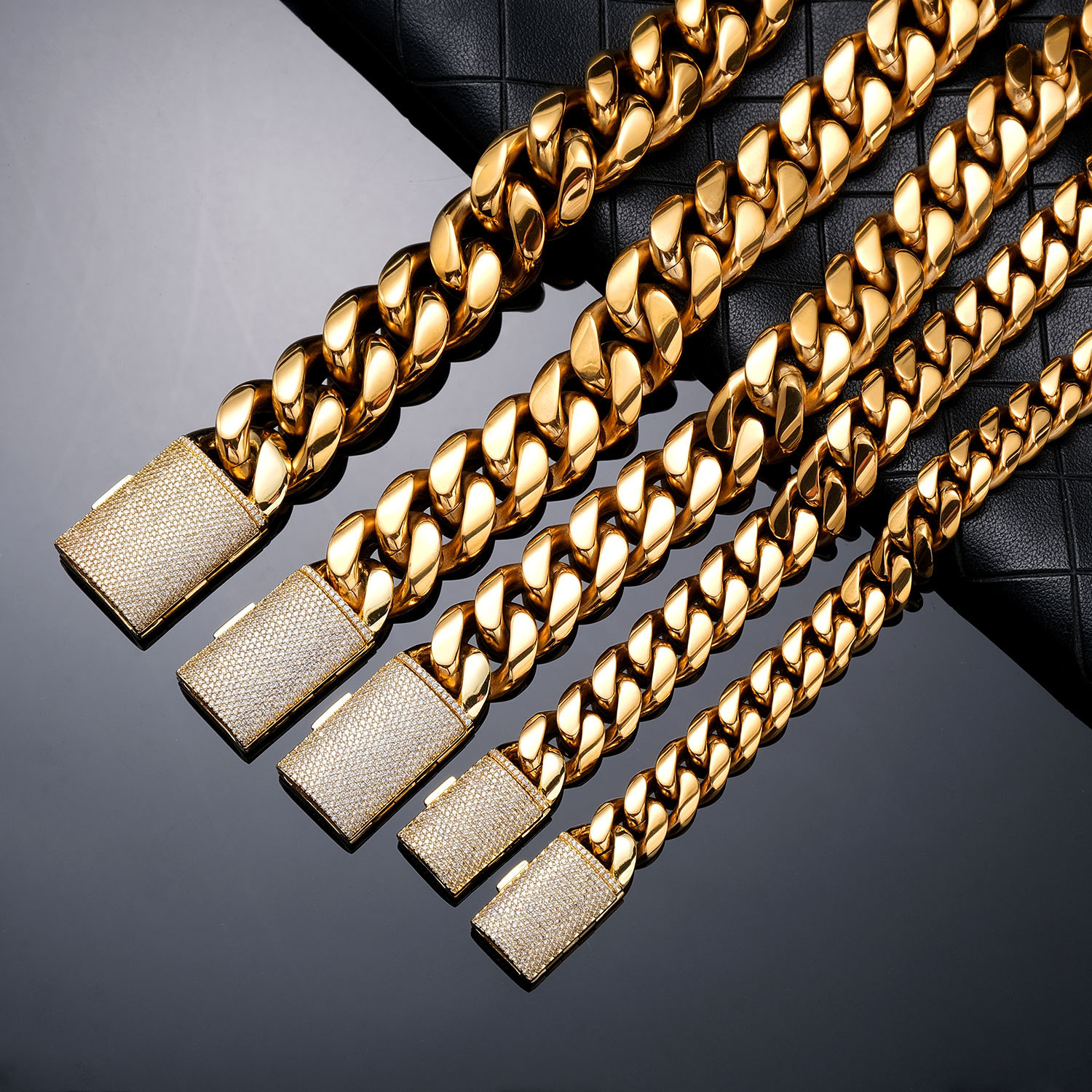 8-22mm European and American Hip-Hop 18K Gold Electroplated Stainless Steel Cuban Chain Micro-Paved Zircon Buckle Necklace Jmbz